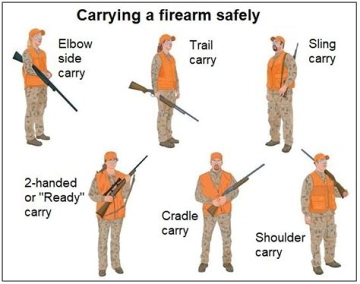 Cradle carry – A one or two-handed carry in which the barrel of the firearm is cradled in the bend of one arm and the wrist of the stock is held in either hand. Elbow carry – Transporting a firearm with the forearm of the firearm hooked over your elbow. Muzzle is pointed toward the ground.Should the hunter in front Use elbow carry?
